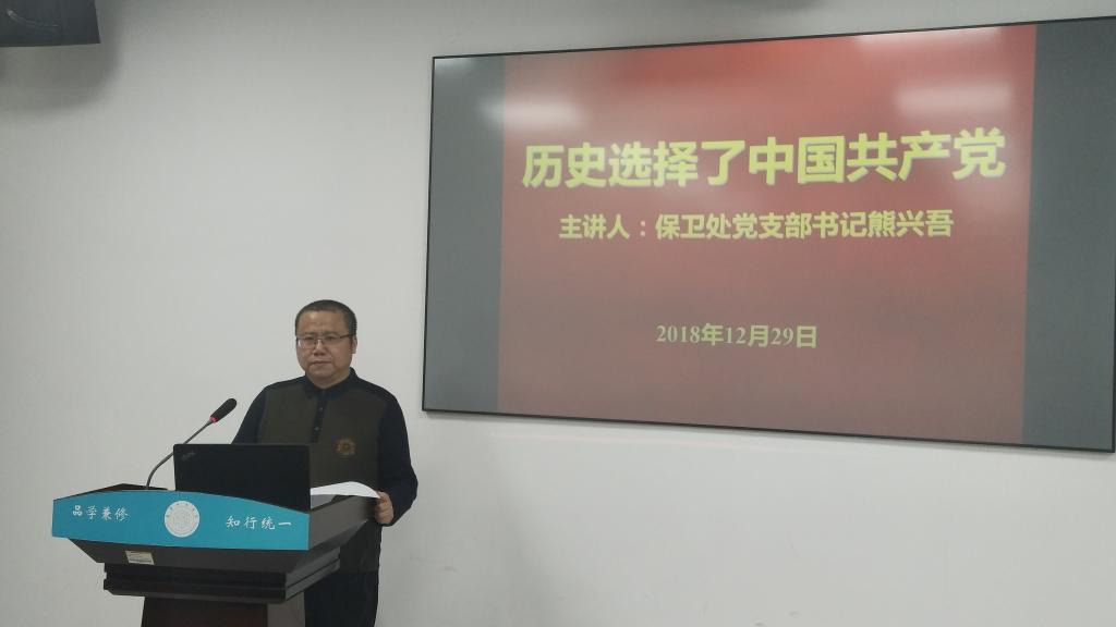 党课上,熊兴吾同志围绕《历史选择了中国共产党》,根据自身对党的历史的深入了解以及多年的党建工作经验,给保卫处职工上了一节生动而又严肃的党课。